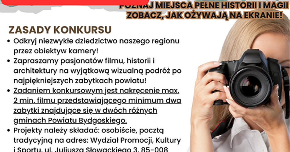 Informujemy o konkursie pn. „Powiat w oku kamery – filmowa podróż po zabytkach z terenu powiatu bydgoskiego”!