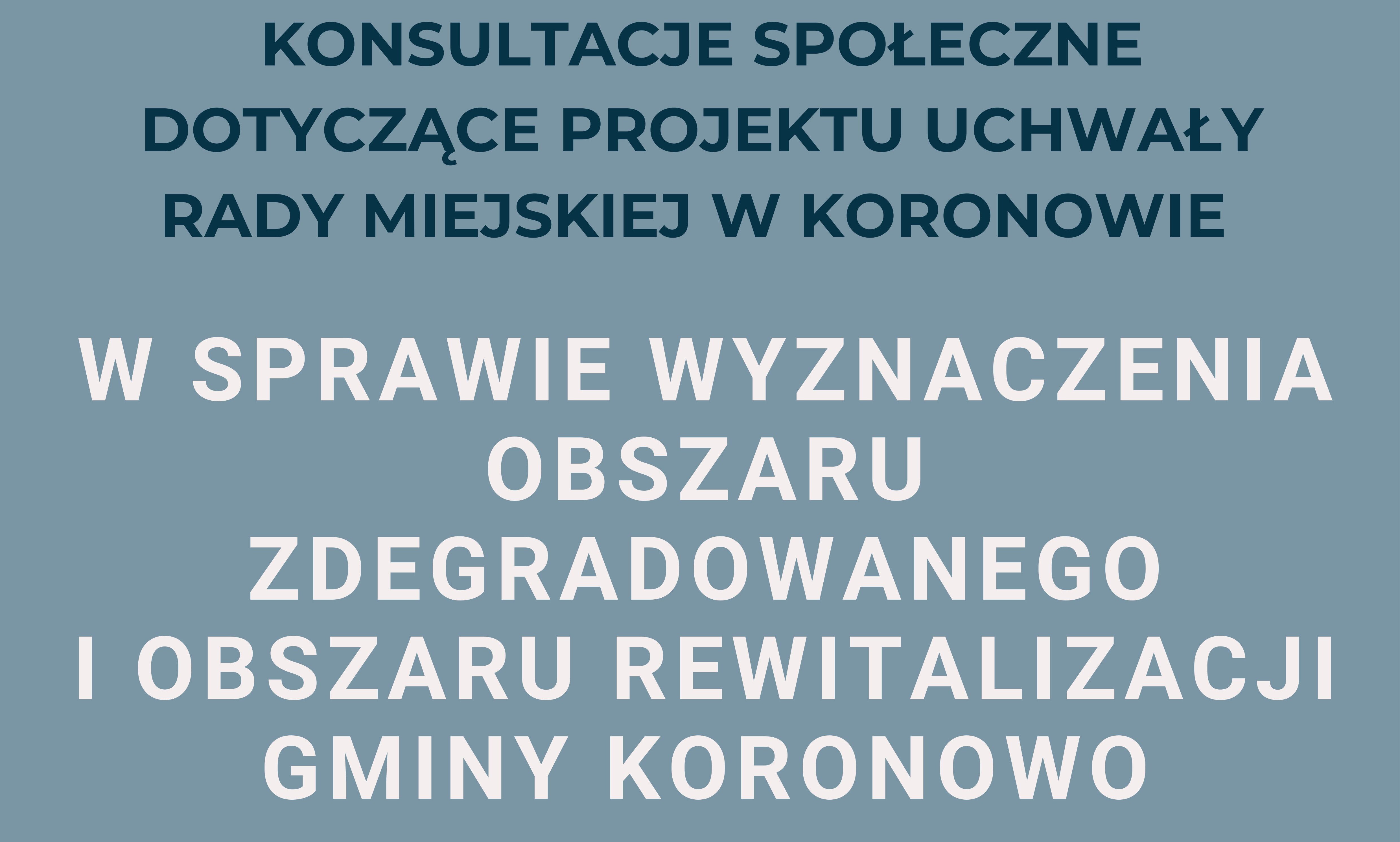 Burmistrz Koronowa działając na podstawie art. 6 i art. 11 ust. 3 ustawy z dnia 9 października 2015 r., o rewitalizacji (Dz. U. 2024 r. poz. 278) informuje o rozpoczęciu konsultacji społecznych projektu Uchwały Rady Miejskiej w Koronowie w sprawie wyznaczenia obszaru zdegradowanego i obszaru rewitalizacji Gminy Koronowo.