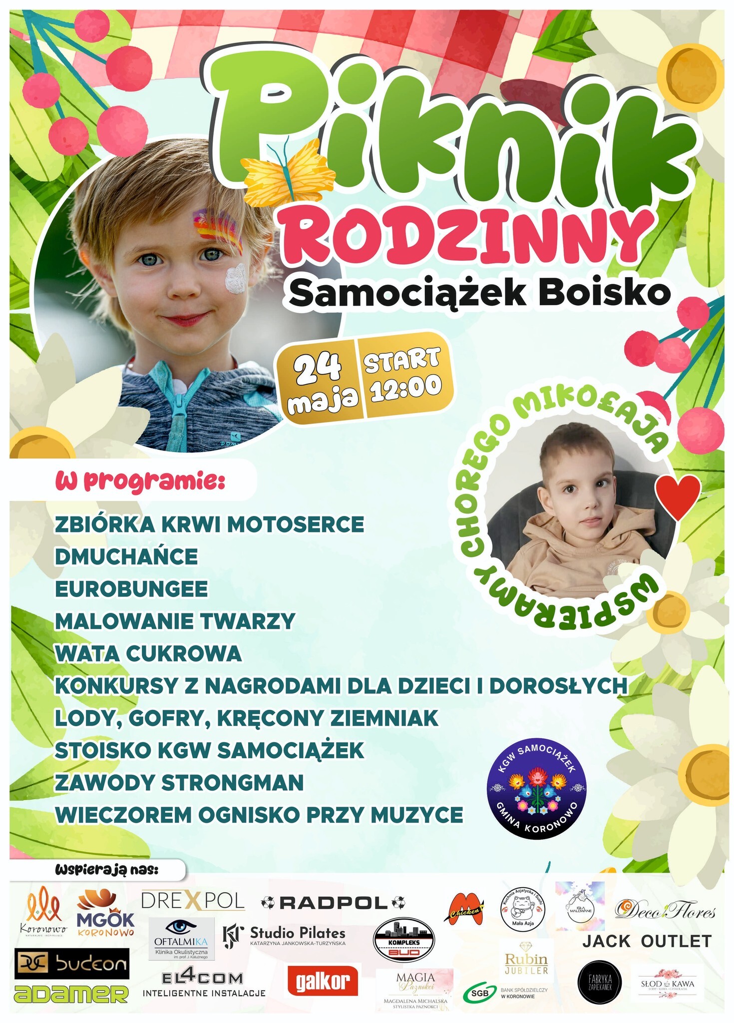 Sołtys, Rada Sołecka i KGW Samociążek zapraszają na PIKNIK RODZINNY w Samociążku, który odbędzie się 24 maja 2025 r. na boisku.