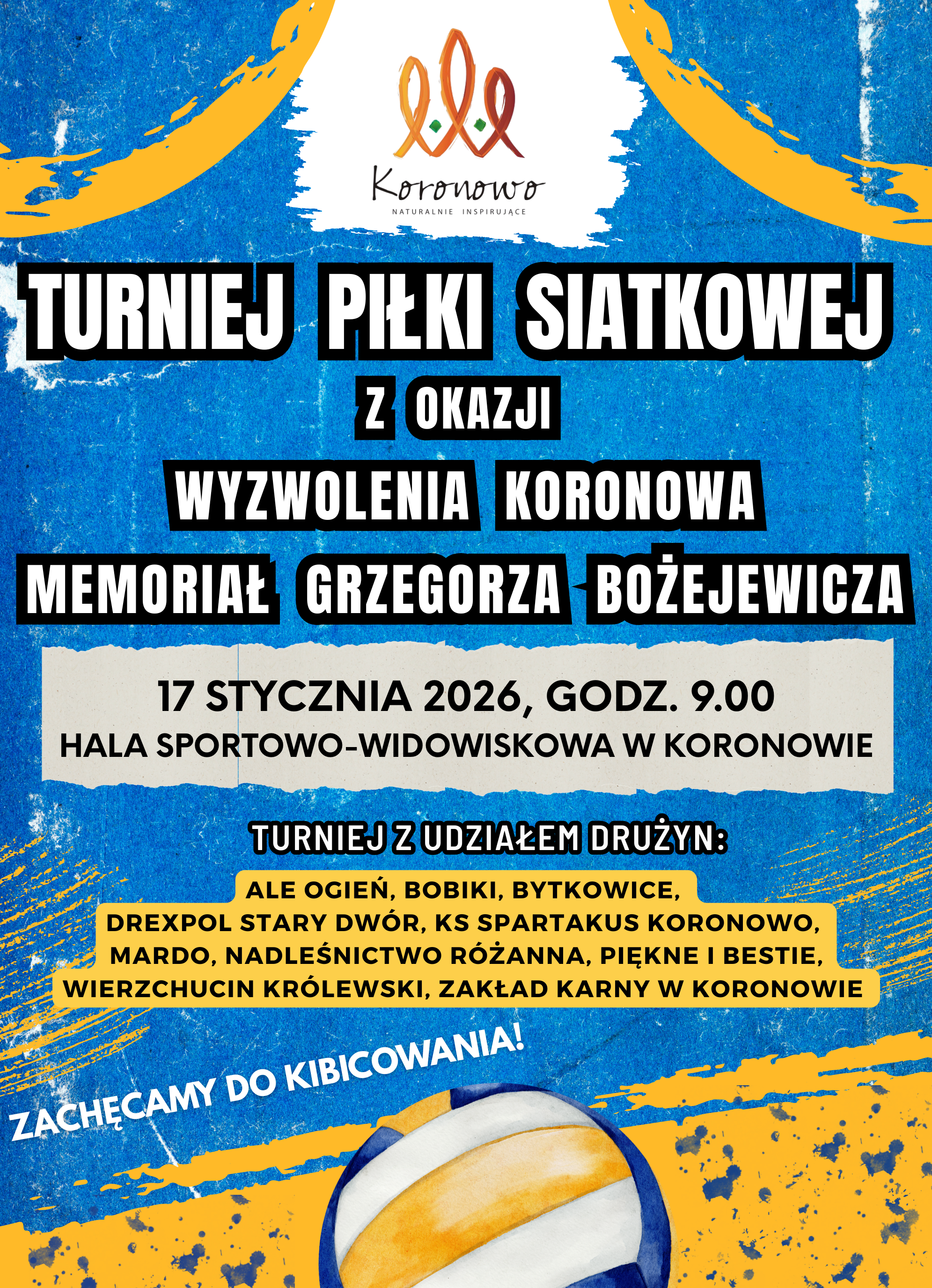 17 stycznia 2026 r. w hali sportowo - widowiskowj w Koronowie odbędzie się Turniej Piłki Siatkowej z okazji Wyzwolenia Koronowa, Memoriał Grzegorza Bożejewicza.