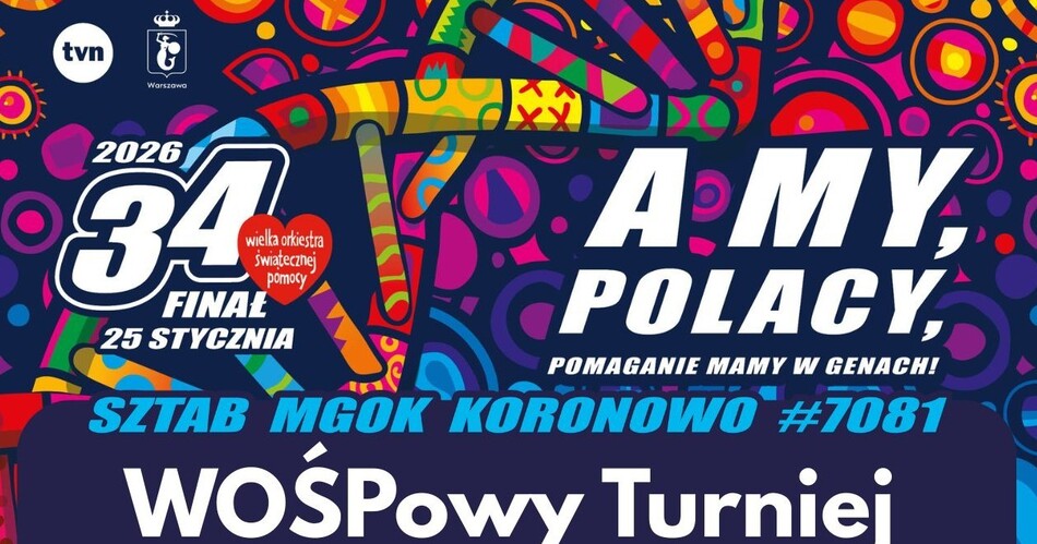 WOŚPowy Turniej Halowej Piłki Nożnej odbędzie się 18 stycznia 2026 r. w hali MGOSiR w Koronowie.