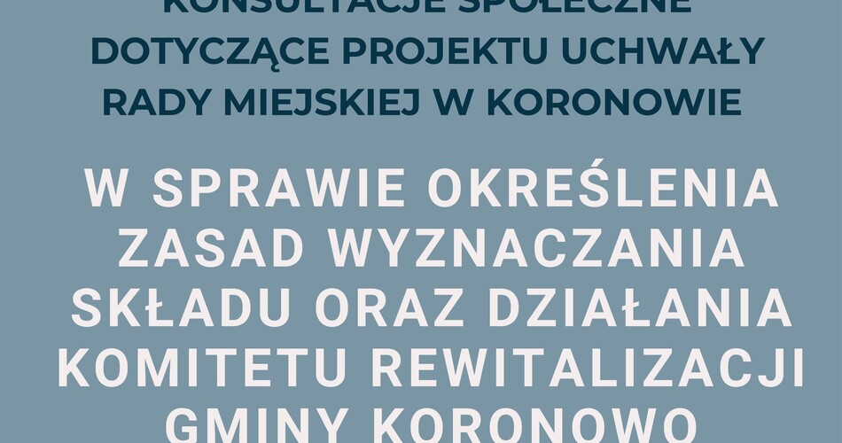 13 października 2025 roku rozpoczynamy konsultacje społeczne dotyczące propozycji zasad wyznaczania składu oraz zasad działania Komitetu Rewitalizacji na terenie Gminy Koronowo.