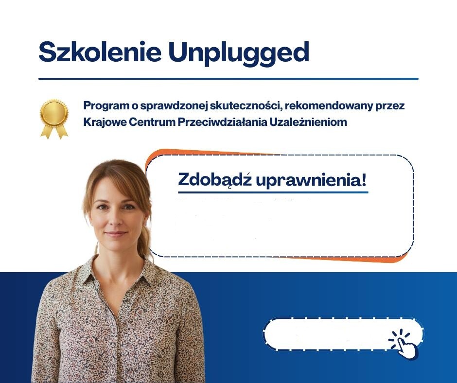 W dniach 30 - 31 marca 2026 roku odbyło się szkolenie dla pięciu nauczycieli ze szkół podstawowych z terenu Gminy Koronowo z rekomendowanego programu UNPLUGGED. Program ten jest jednym z najbardziej rozpoznawalnych i najlepiej przebadanych programów profilaktyki uniwersalnej dla uczniów szkół podstawowych. Dzięki uzyskanym certyfikatom nauczyciele będą mogli przeprowadzać w/w program cyklicznie w placówach oświatowych z terenu naszej gminy.
