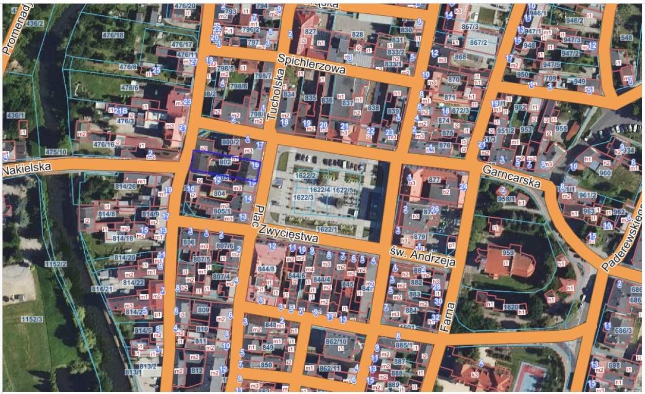 Z własnością lokalu związany będzie udział wynoszący 3647/65990 części w częściach wspólnych budynku i innych urządzeniach nie służących wyłącznie do użytku właścicieli poszczególnych lokali oraz taki sam udział w prawie własności działki gruntowej nr 802 o powierzchni 542 m² objętej księgą wieczystą nr BY1B/00128045/7.