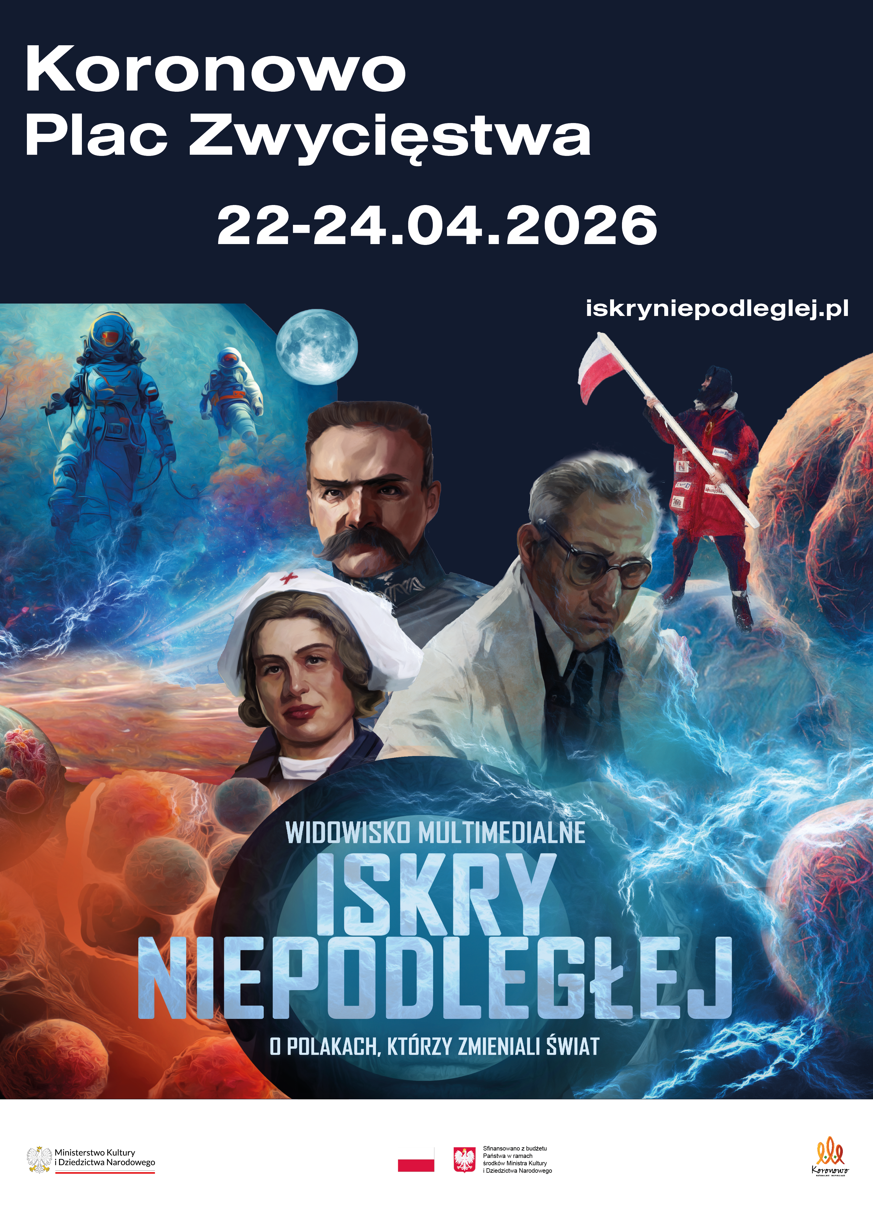 W dniach 22 - 24 kwietnia 2026 r., wyjątkowe, mobilne widowisko multimedialne - ISKRY NIEPODLEGŁEJ zawita do Koronowa!