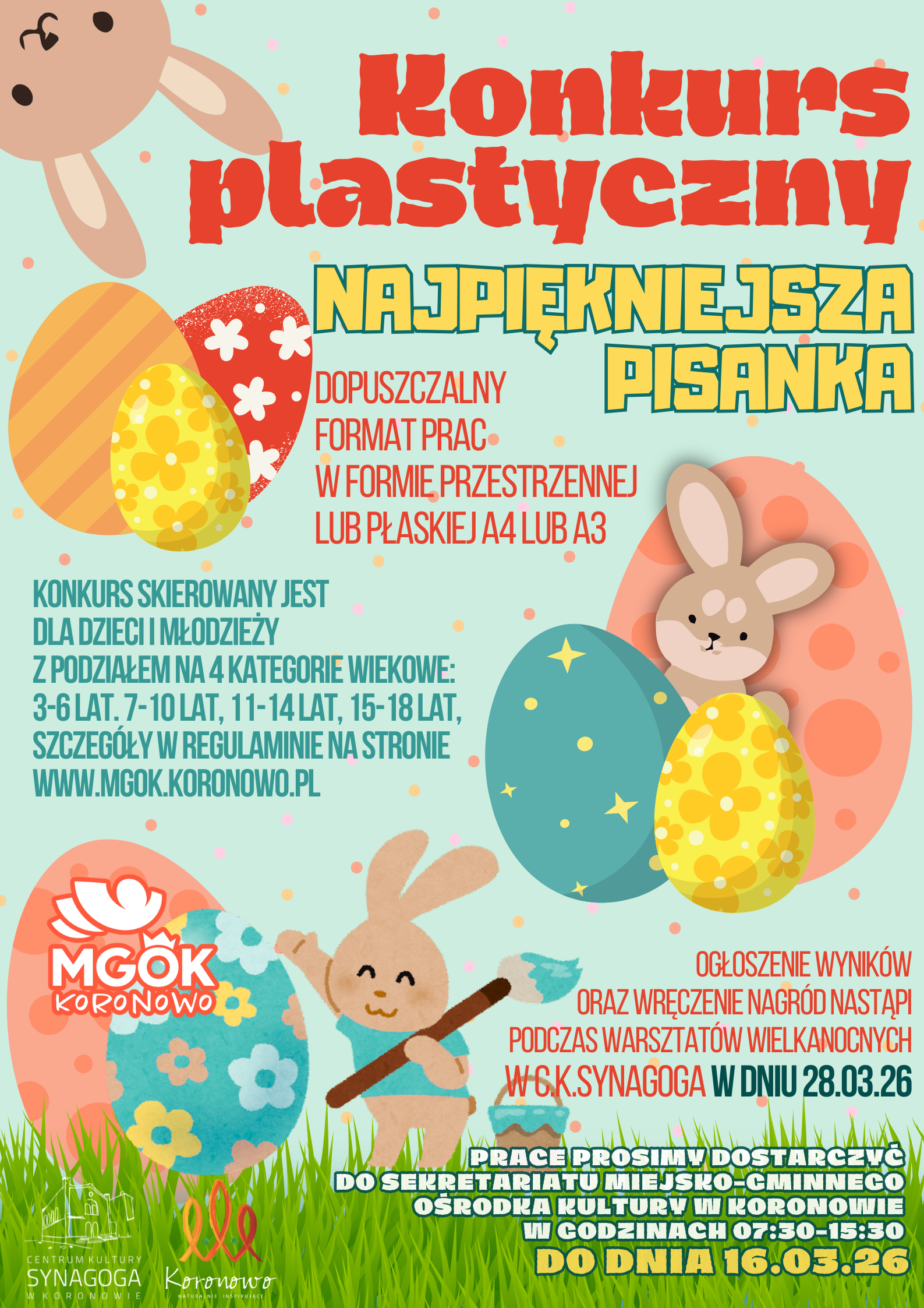Ogłoszenie wyników oraz wręczenie nagród odbędzie się podczas Warsztatów Wielkanocnych w Centrum Kultury Synagoga w Koronowie w dniu 28 marca 2026 r.