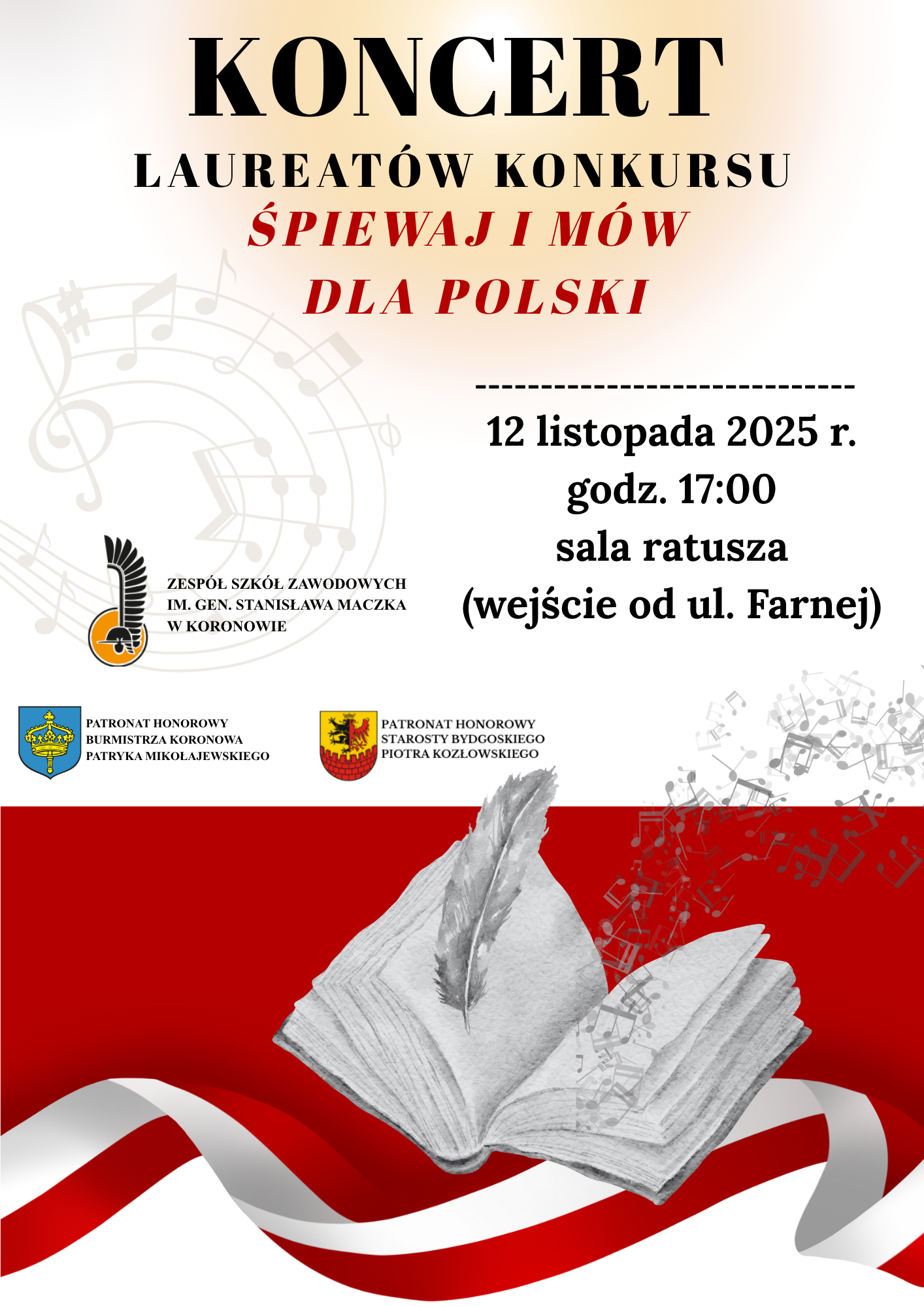 Konkurs „Śpiewaj i mów dla Polski”, którego organizatorem jest Zespół Szkół Zawodowych im. gen. Stanisława Maczka w Koronowie