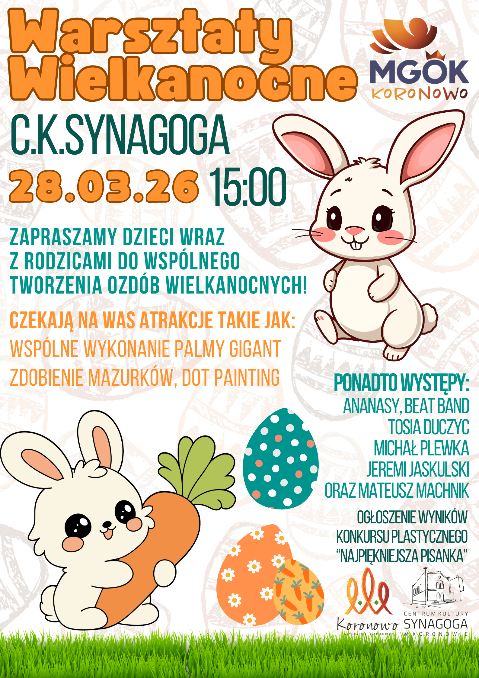 Zapraszamy na Warszaty Wielkanocne, które odbędą się 28 marca 2026 r. w Centrum Kultury Synagoga w Koronowie.