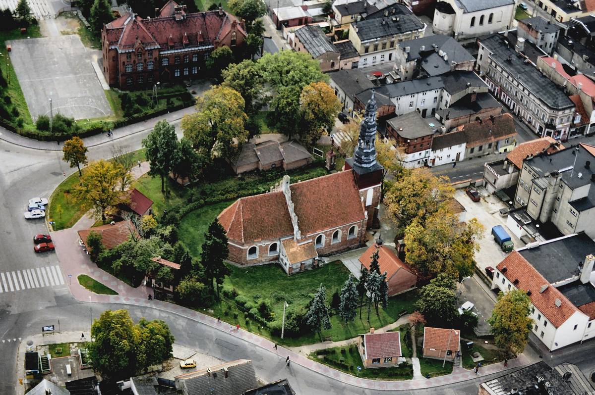 Z końca XVI wieku mieszczący się na skarpie wznoszącej się z rynku ku wschodowi. Pierwotnie był tu kościół drewniany, zbudowany na przełomie lat 1382-1396. W obecnej postaci powstał w 1599r. za sprawą starań opata Wawrzyńca Żalińskiego. Gotycki, trzynawowy z zamkniętym trójbocznie prezbiterium i kwadratową wieżą od zachodu, ze szkarpami na narożach. W 1762 roku zniszczone sklepienie wymieniono na drewniane stropy. Wyposażenie kościoła: barokowo-rokokowe, z interesującym późnobarokowym ołtarzem głównym z 1740 roku, na którym podziwiać można obraz Matki Boskiej "z dzieciątkiem w srebrnej sukience".